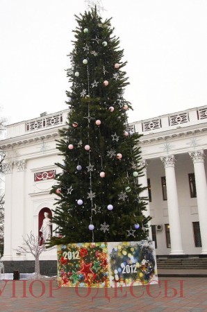 А вот такая сборная елка (состоящая из трехсот елок-палок) установлена на Думской площади для остальных одесситов.
