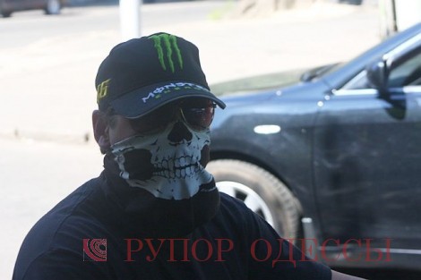 Совершенно случайно замыкающим в колонне моряков на ул.Маразлиевская оказался экстравагантный байкер.