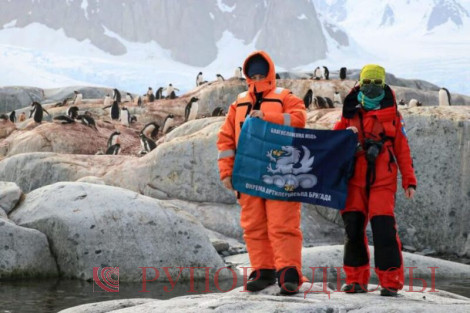 Экипаж «Ноосферы» развернул в Антарктике флаг артиллерийской бригады морской пехоты из Одесчины