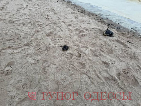 На побережье Одессы обнаружили нефтяные пятна и погибших птиц.