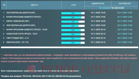 Жителям обещают вернуть воду в 11.00, на часть Люстдорфской дороги и проспект Князя Ярослава Мудрого – в 12.00, а на вторую часть Люстдорфской дороги и на улицу Евгения Чикаленко – в 13.00.