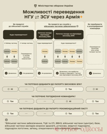 На инфографике можно увидеть пошаговые объяснения, какие варианты перевода возможны, какие документы добавить и где запросят дополнительное согласование командира.